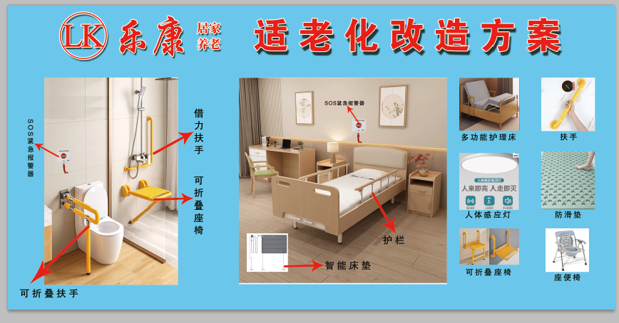 我们鼓励家庭在老年人尚未出现健康问题或意外事故之前,就开始考虑居家适老化改造。乐康居家养老适老化改造通过制定个性化的适老化改造计划,结合老年人的实际需求和生活习惯,为老人们打造一个更加安全、舒适和便利的居住环境。